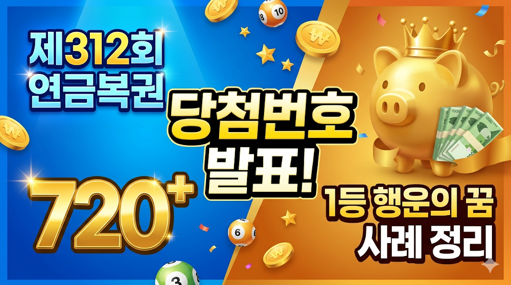 제312회 연금복권 720+ 당첨번호 결과 및 1등 당첨자 사례 분석2026년 4월 23일 목요일, 많은 이들이 고대하던 제312회 연금복권 720+ 당첨번호가 공식 발표되었습니다. 이번 회차의 1등 당첨 번호는 2조 861949이며, 보너스 번호는 각 조 974036으로 확정되었습니다. 당첨되신 분들에게는 진심으로 축하의 말씀을 전하며, 낙첨되신 분들께도 다음 회차의 행운이 함께하기를 기원합니다. 핵심 요약✅ 1등 당첨번호: 2조 861949 (월 700만 원 × 20년)✅ 2등 당첨번호: 각 조(1, 3, 4, 5조) 861949 (월 100만 원 × 10년)✅ 보너스 번호: 각 조 974036 (월 100만 원 × 10년)✅ 특이사항: 유재석 등 스타가 꿈에 나온 뒤 고액 당첨된 사례가 화제목차 (..